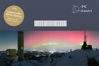Ich habe es schon mitbekommen, dass es in dieser Nacht Polarlicht bis in der Schweiz zu erwarten war, aber nur gegen Morgen früh. Zum Glück habe ich noch ein Blick auf der Säntis-Webcam geworfen. Und staune da: Das Polarlicht war schon voll im Gange. Also nichts wie raus und auf dem Pfannenstiel, oberhalb vom dichten Nebel. So ein Ereignis in der Schweiz wollte ich nicht verpassen.
