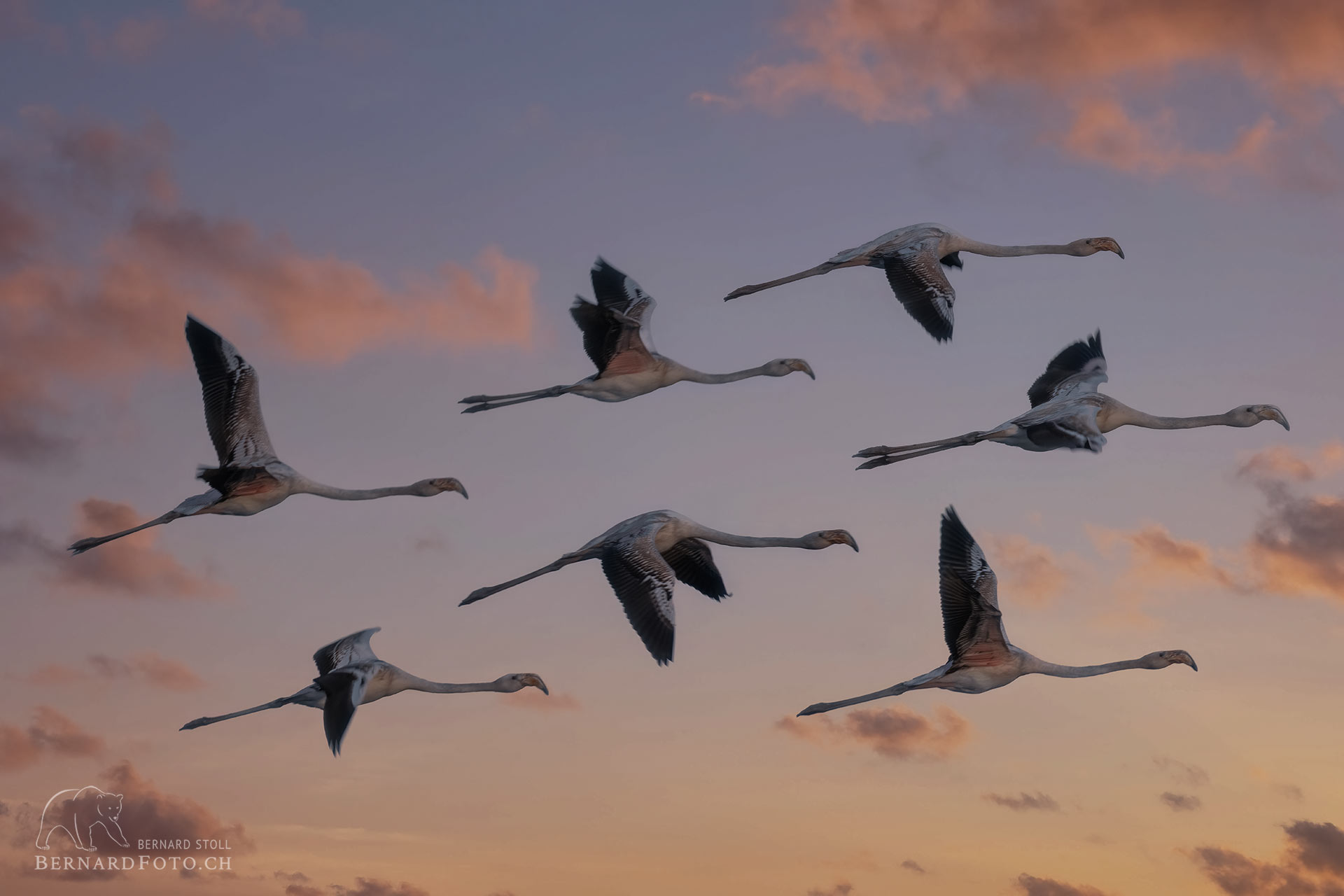 Seit einige Monaten haben sich ca. 20 Flamingos am Klingnauer Stausee niedergelassen. Sie fühlen sich anscheinend richtig wohl hier. Wir waren eigentlich wegen dem schwarzen Schwan dort. Leider war er sehr weit vom Ufer weg. Um so grösser war die Freude, als die Flamingos ihren Rundflug im Abendlicht starteten.